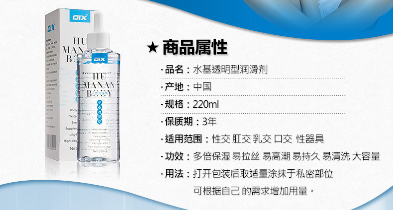 OIX玫瑰花香水基透明润滑剂220ml 拉丝爽滑