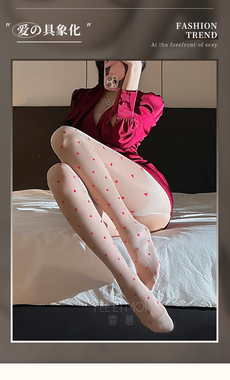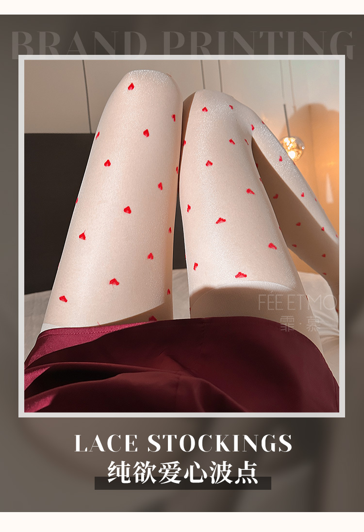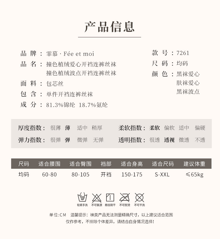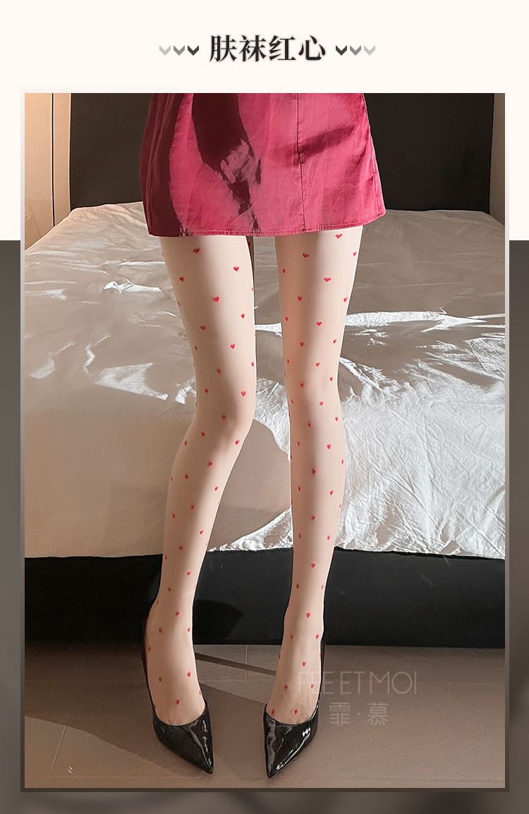 撞色植绒爱心开裆连裤丝袜 复古性感 清透自然