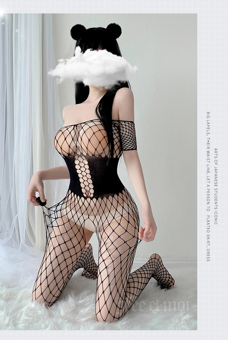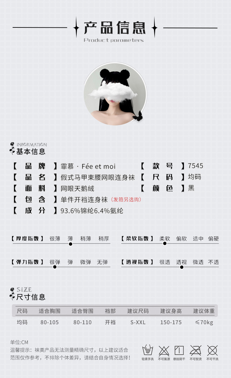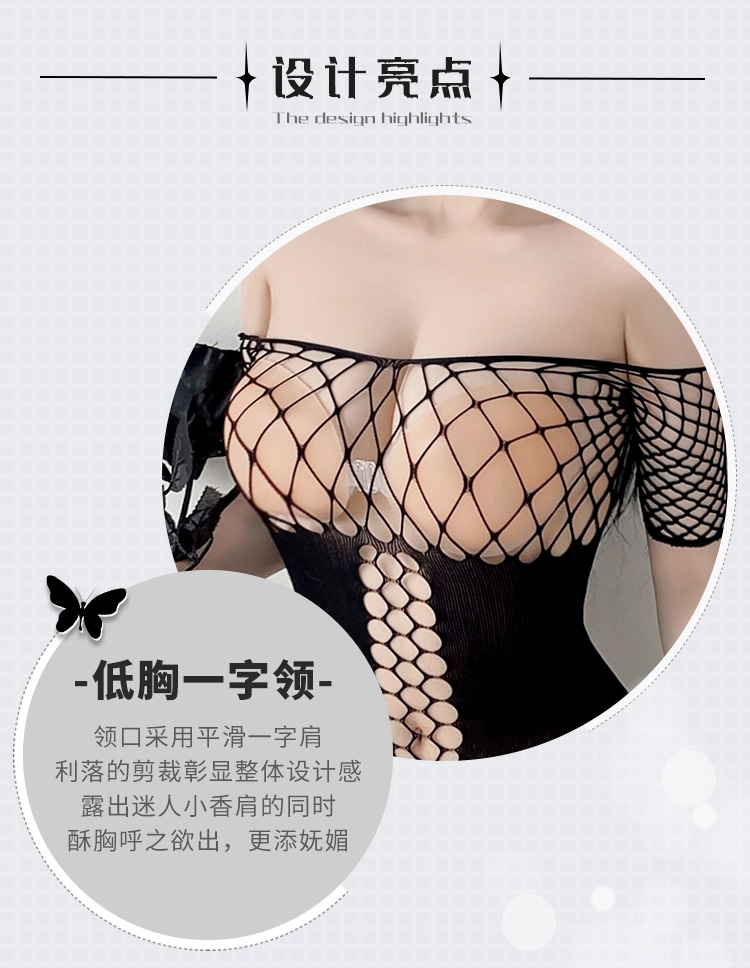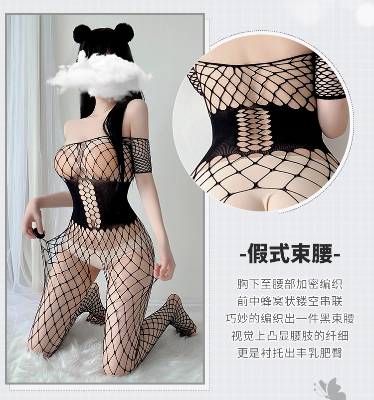 假式马甲束腰网眼连身袜 低胸一字领 开裆露臀
