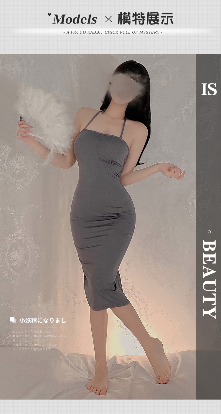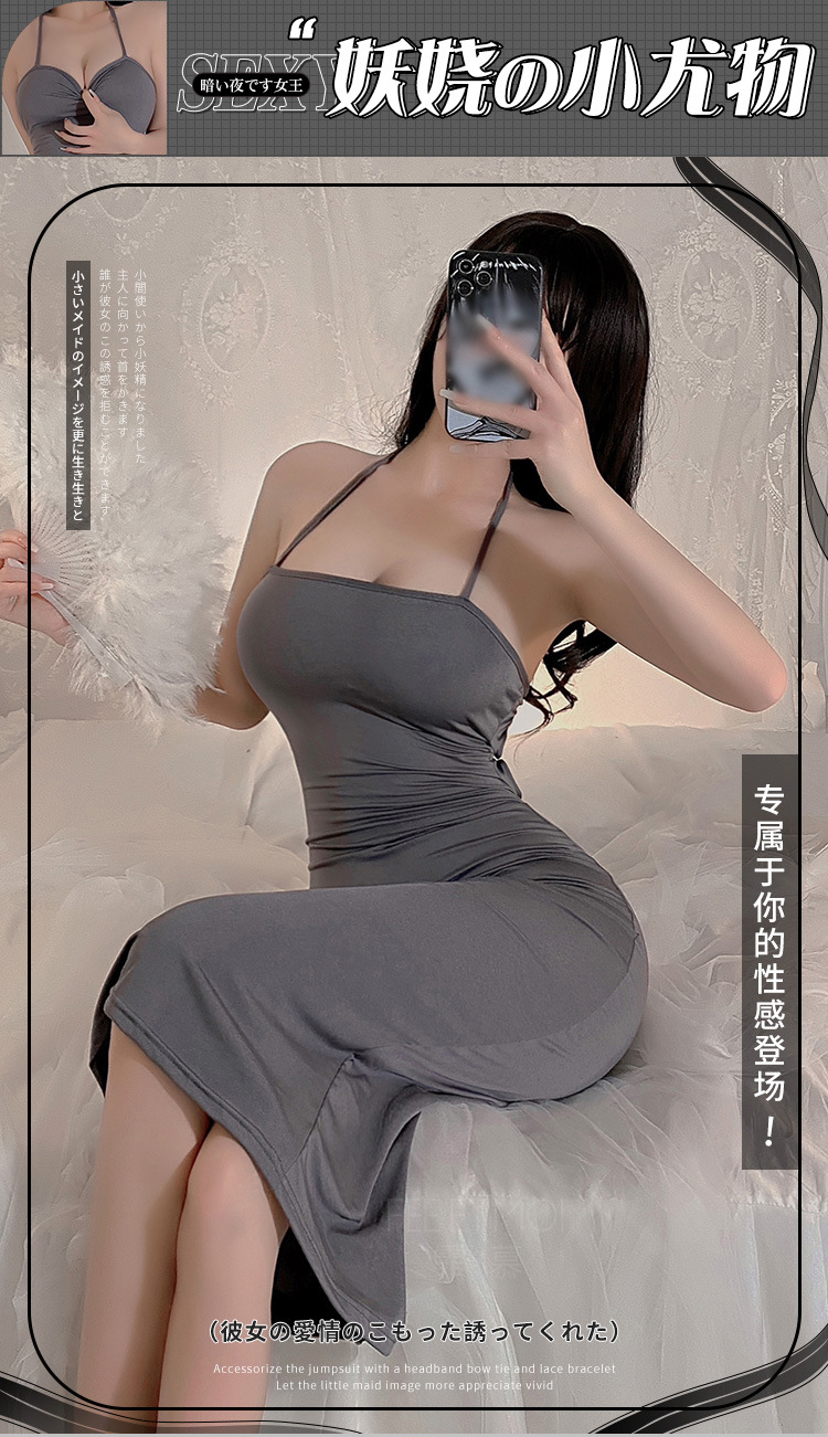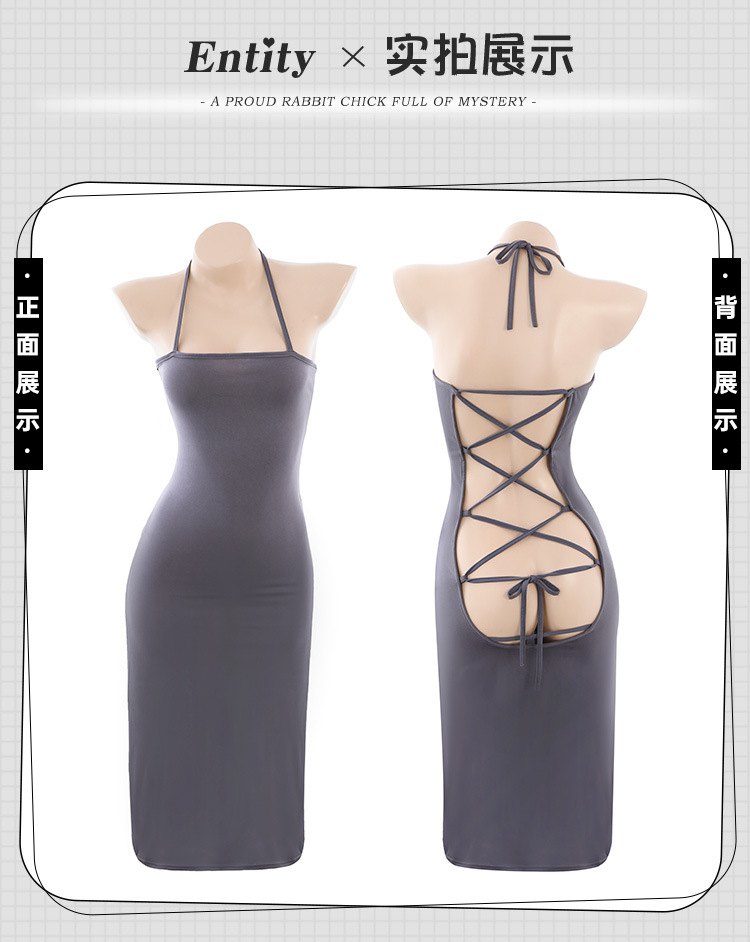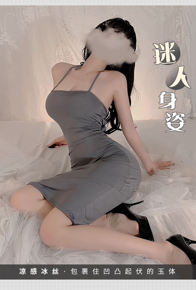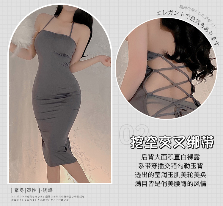 冰丝吊带包臀裙 美背交叉绑带 诱惑翘臀