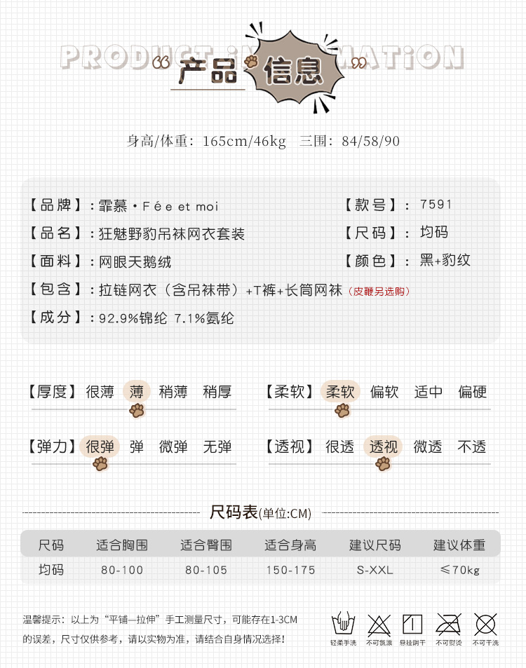 狂魅豹纹吊袜网衣套装 性感小野豹