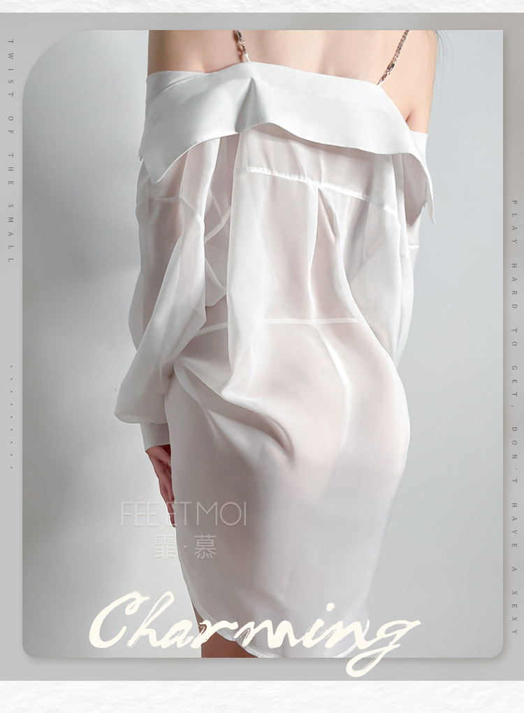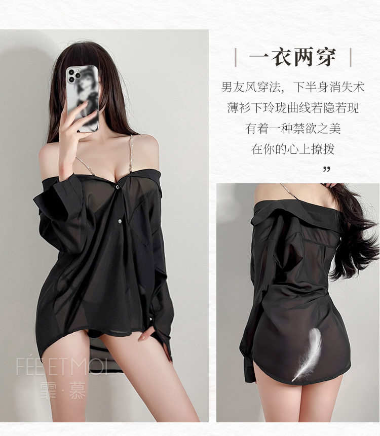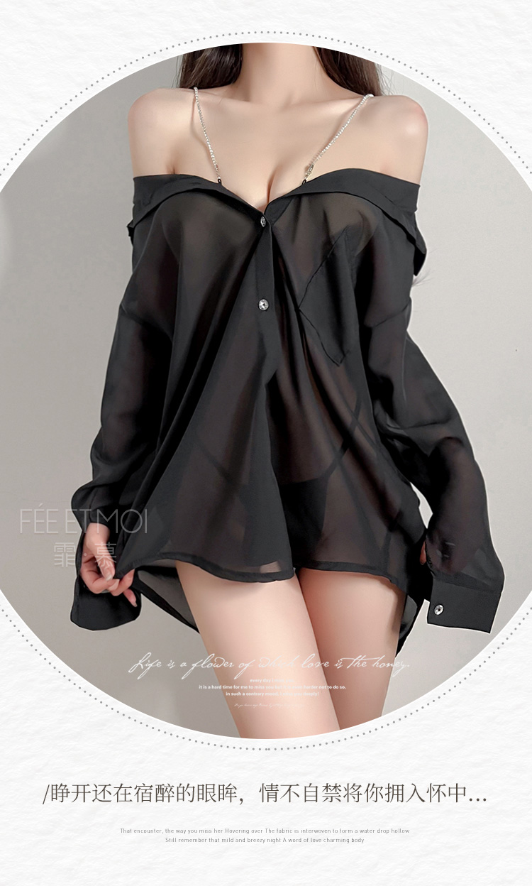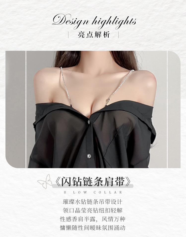 水钻肩带半透明两穿衬衫 慵懒性感男友风