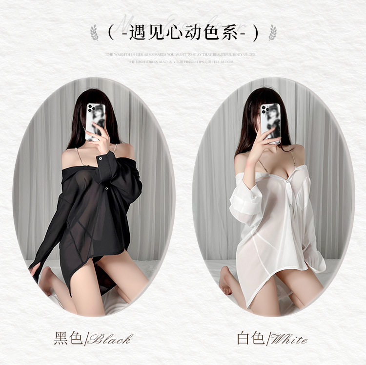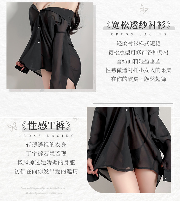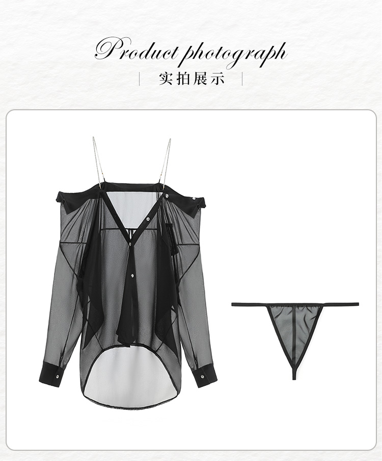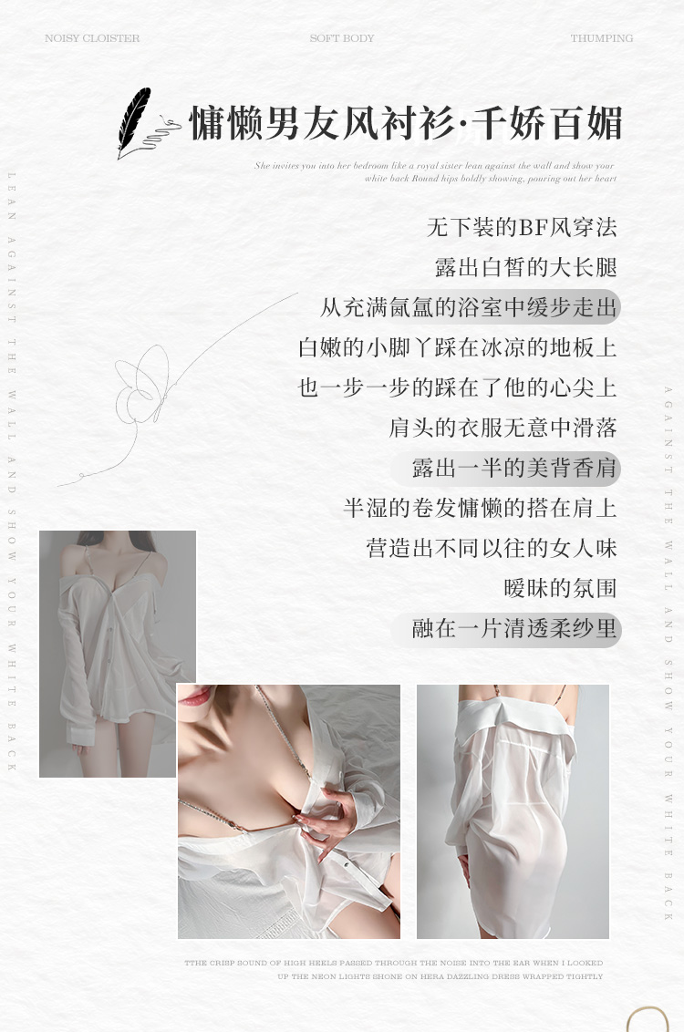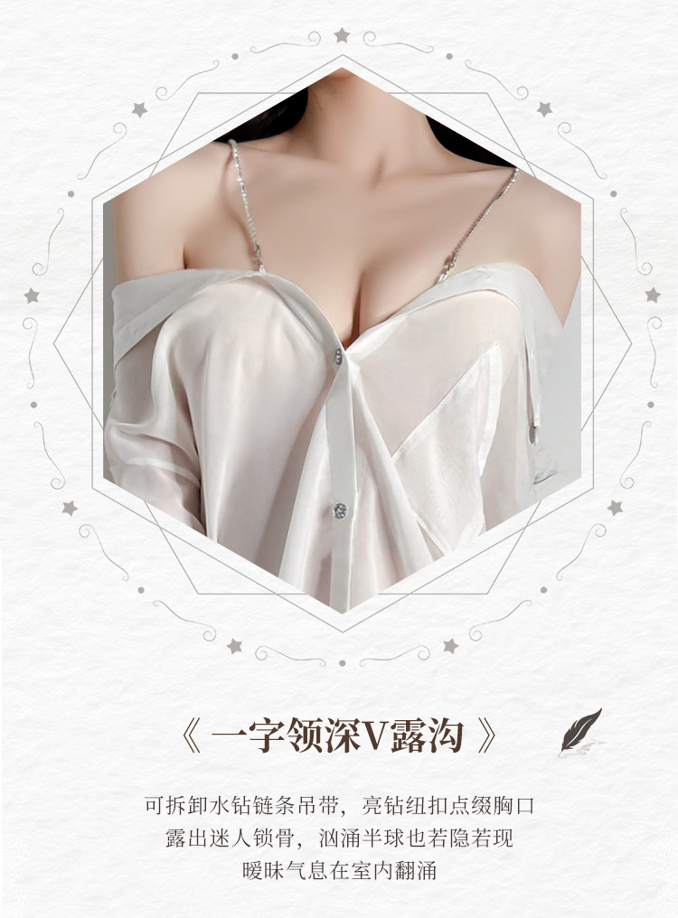 水钻肩带半透明两穿衬衫 慵懒性感男友风