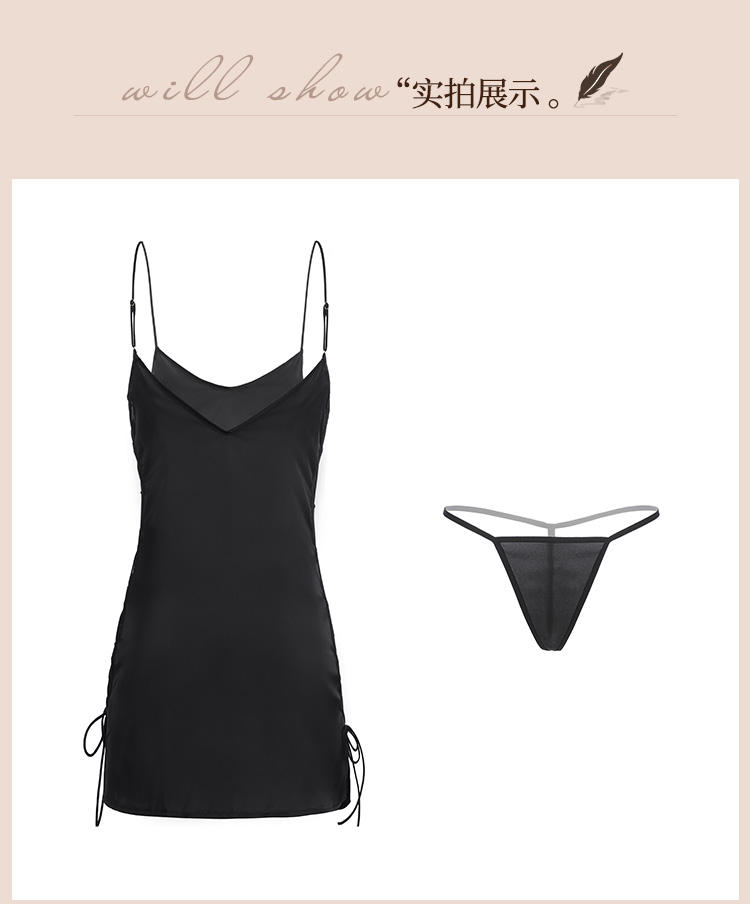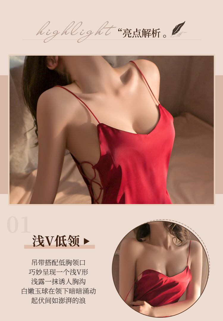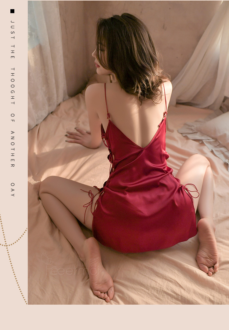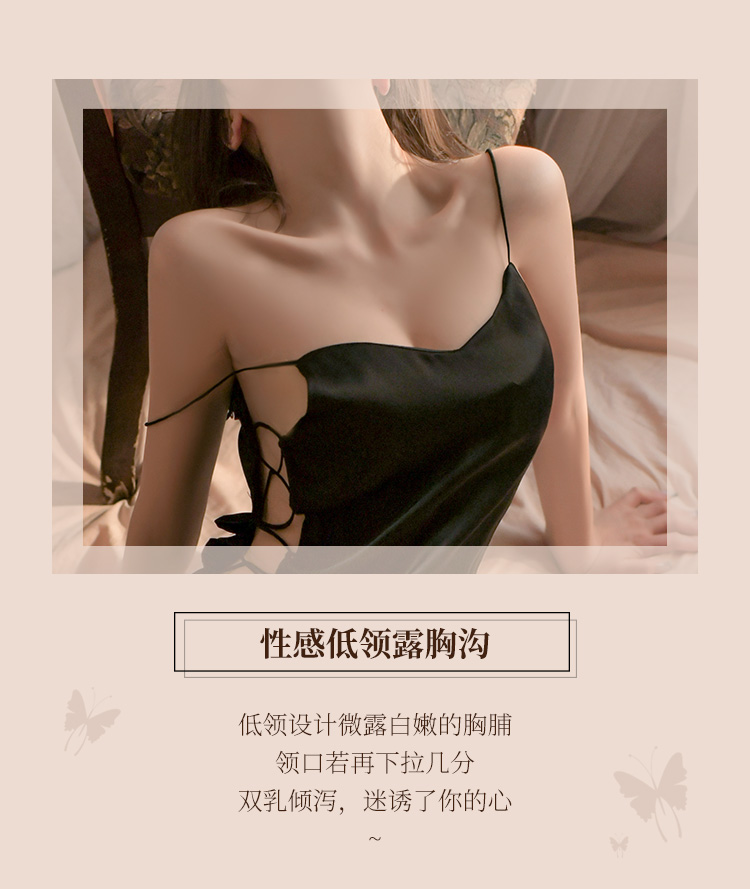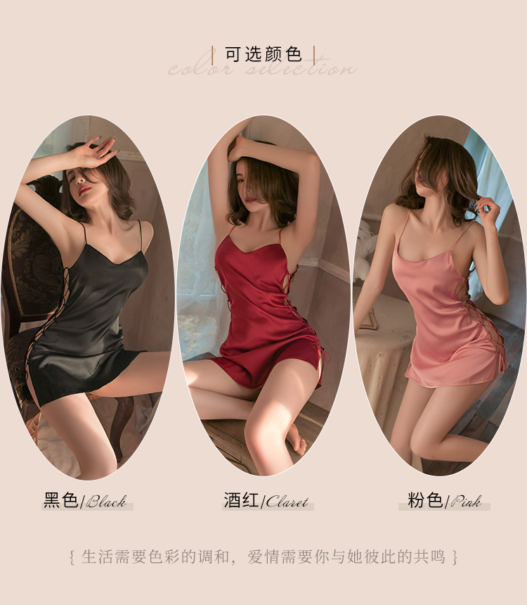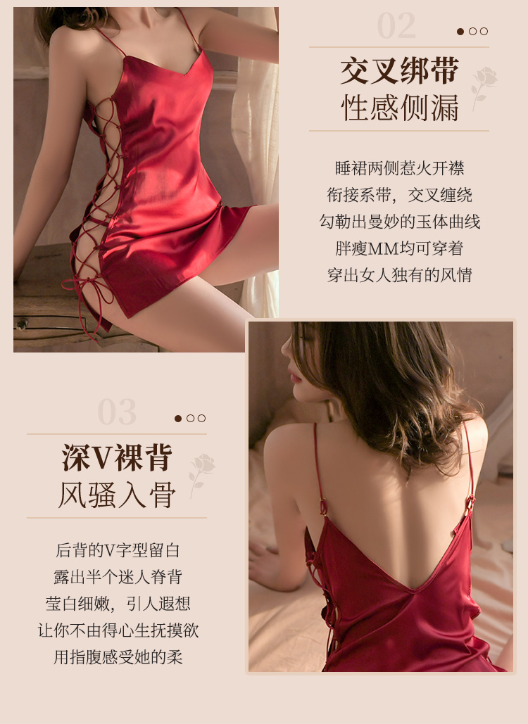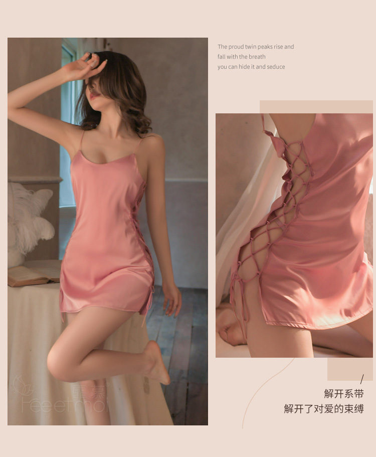 两侧交叉系带仿真丝睡裙 性感侧漏