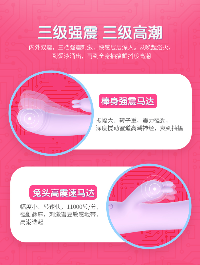雷霆色色兔系列震动棒 内外双震刺激 不撑大私处