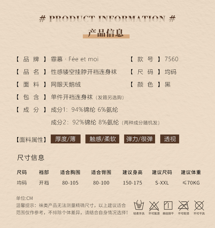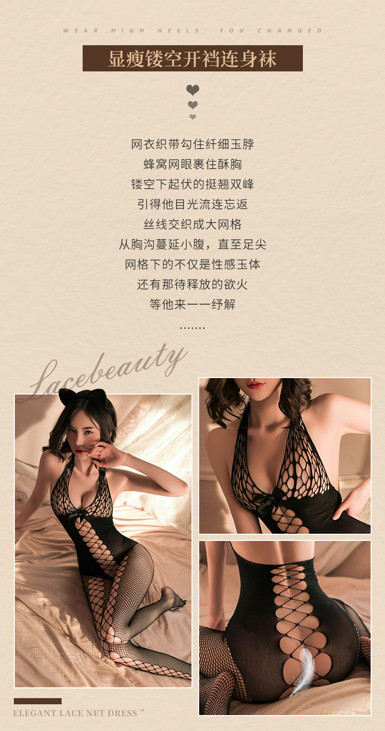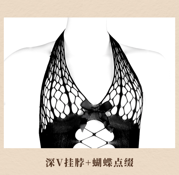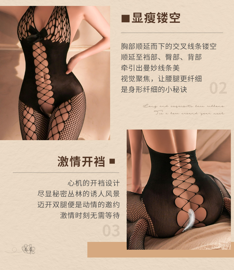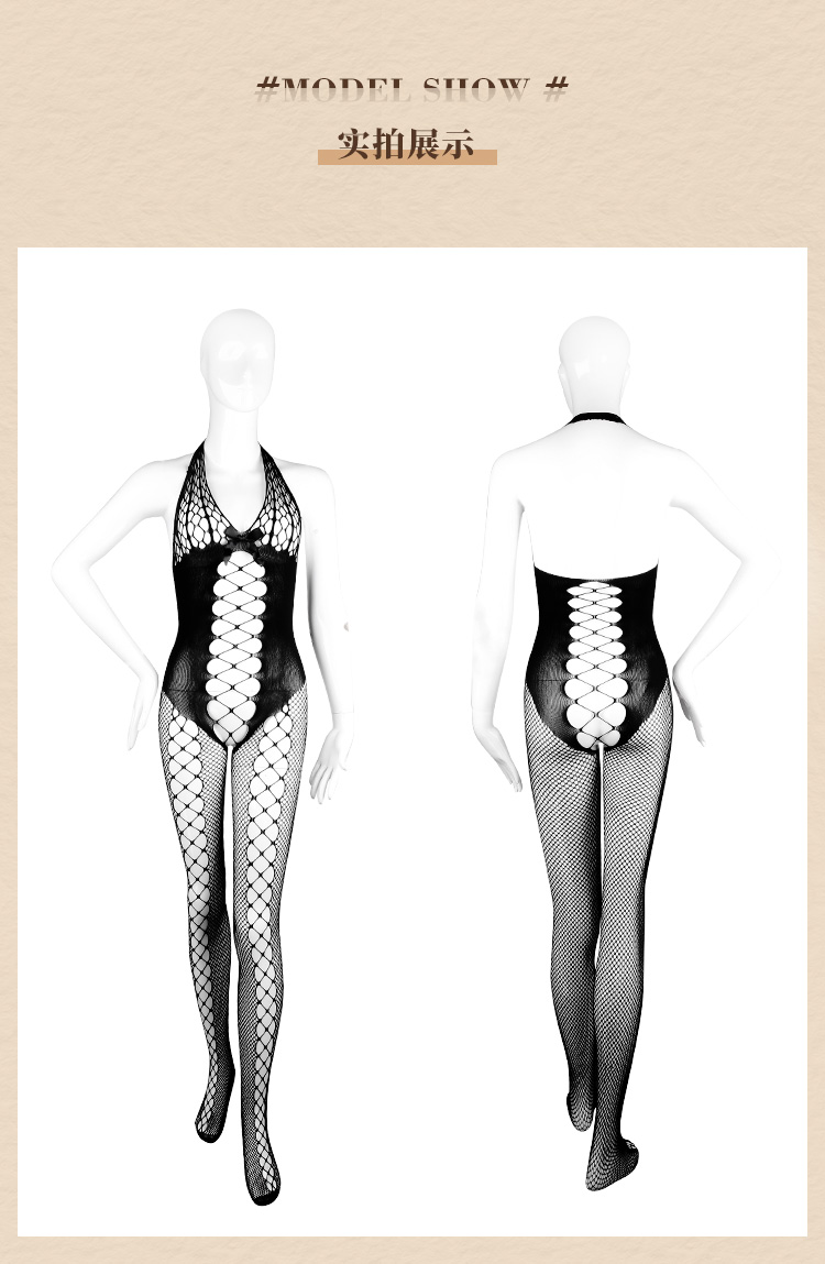 性感镂空挂脖开裆连身袜 修身显瘦 诱惑渔网