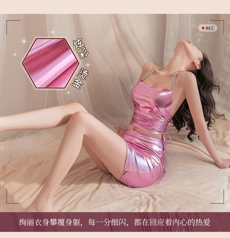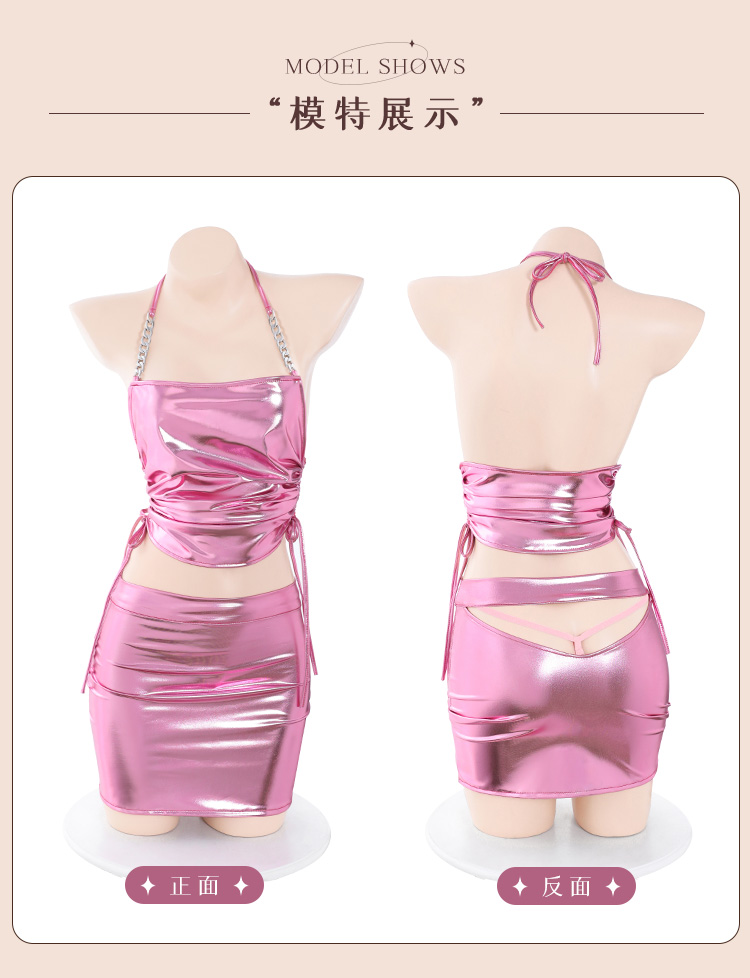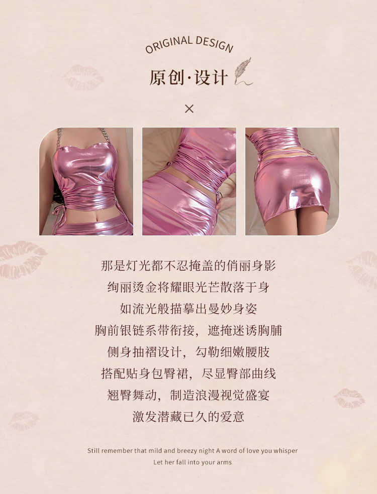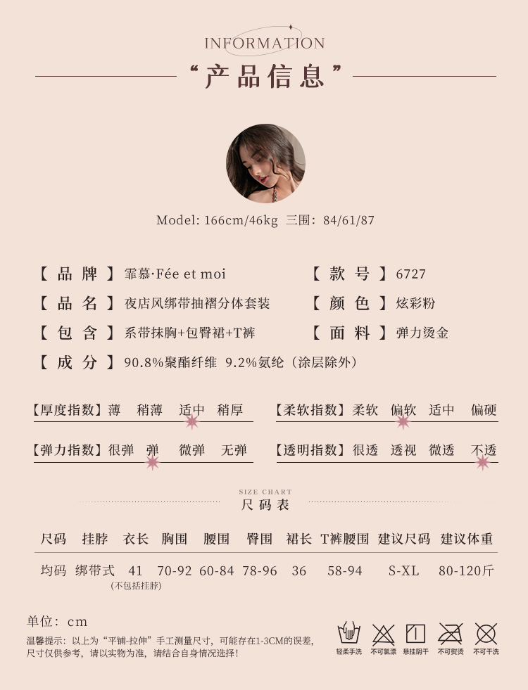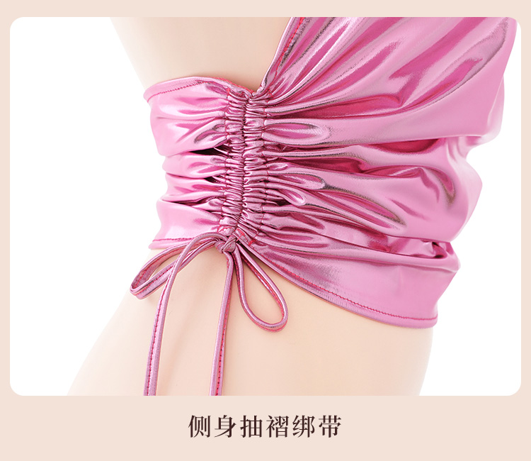 夜店风绑带抽褶分体套装 紧身包臀 炫彩衣身