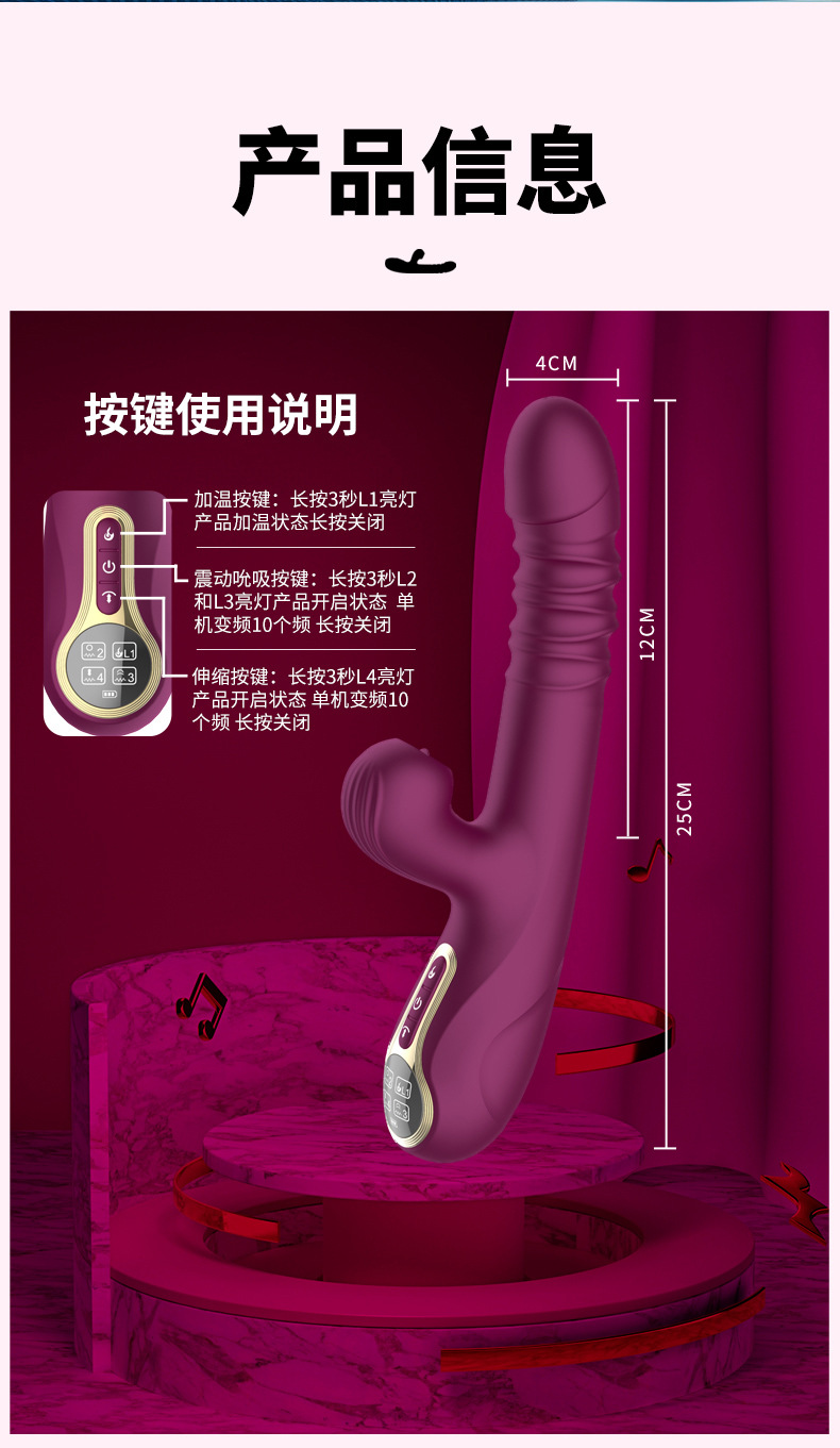 初辰艾丽拉伸缩震动棒 伸缩加温吮吸舌舔