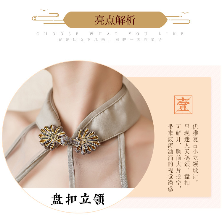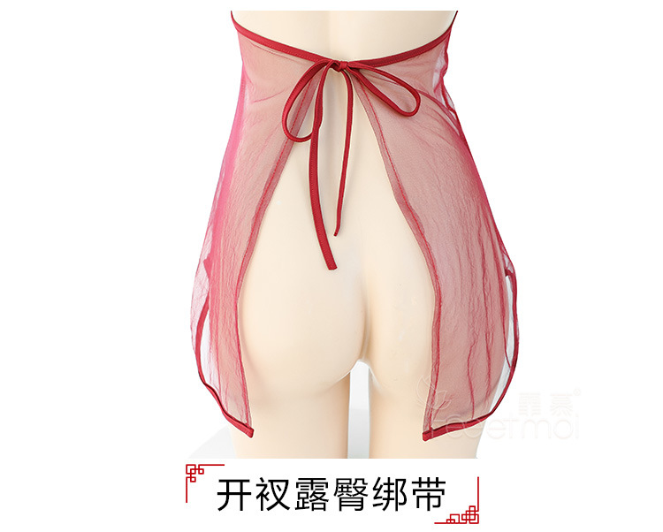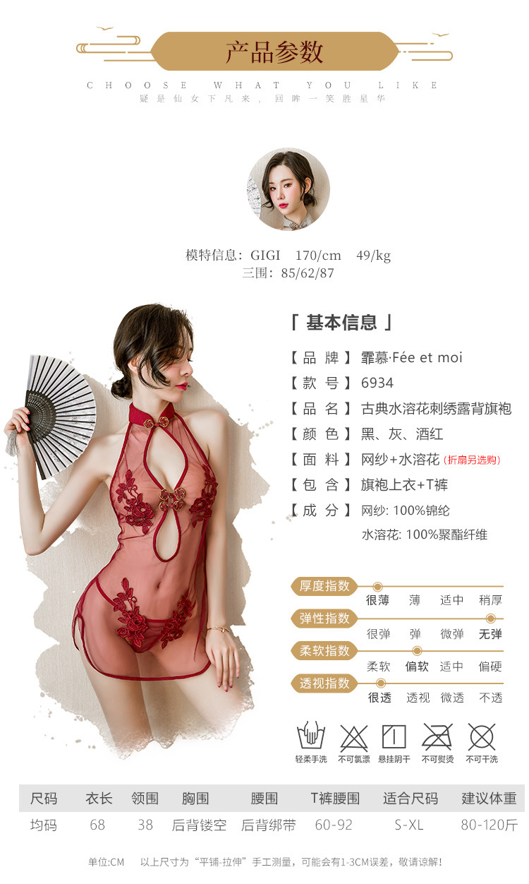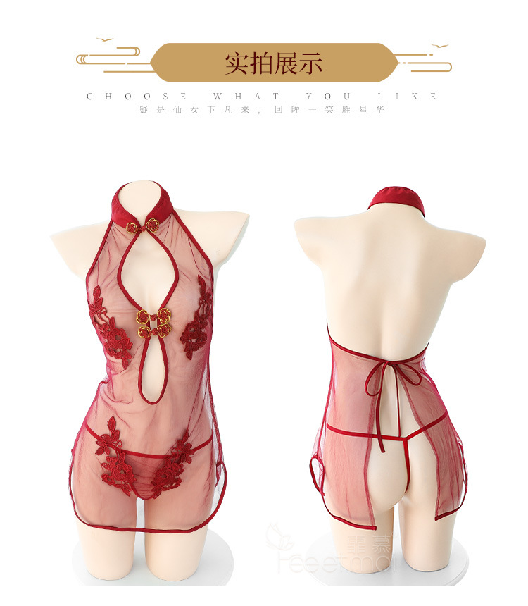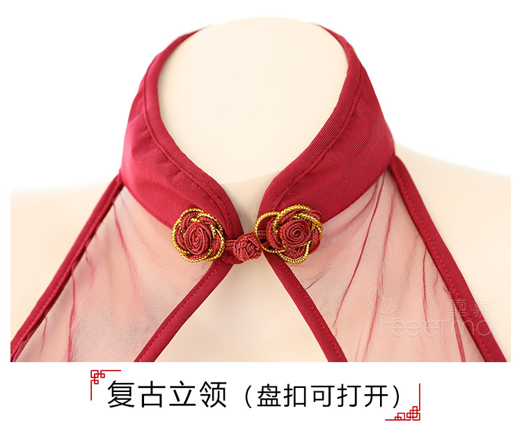 古典水溶花刺绣露背旗袍 盘扣立领 透视薄纱