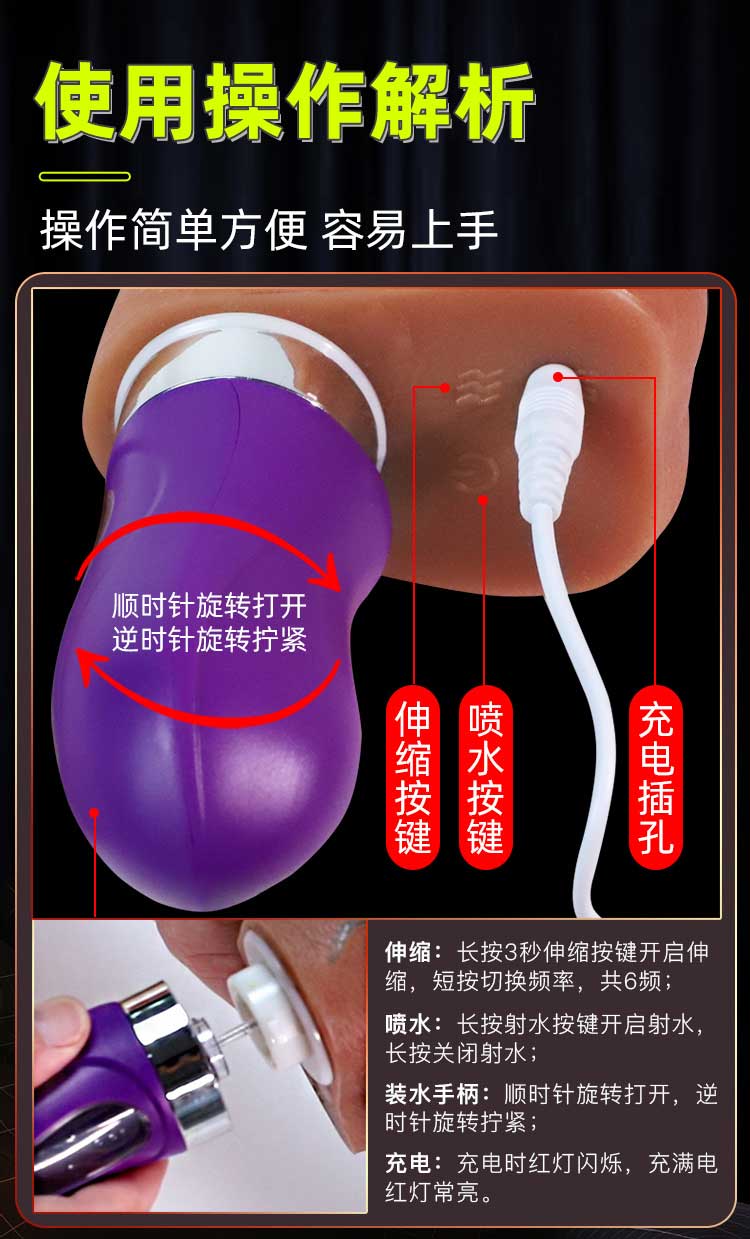 久爱水枪电动炮机 伸缩抽插 射水阳具